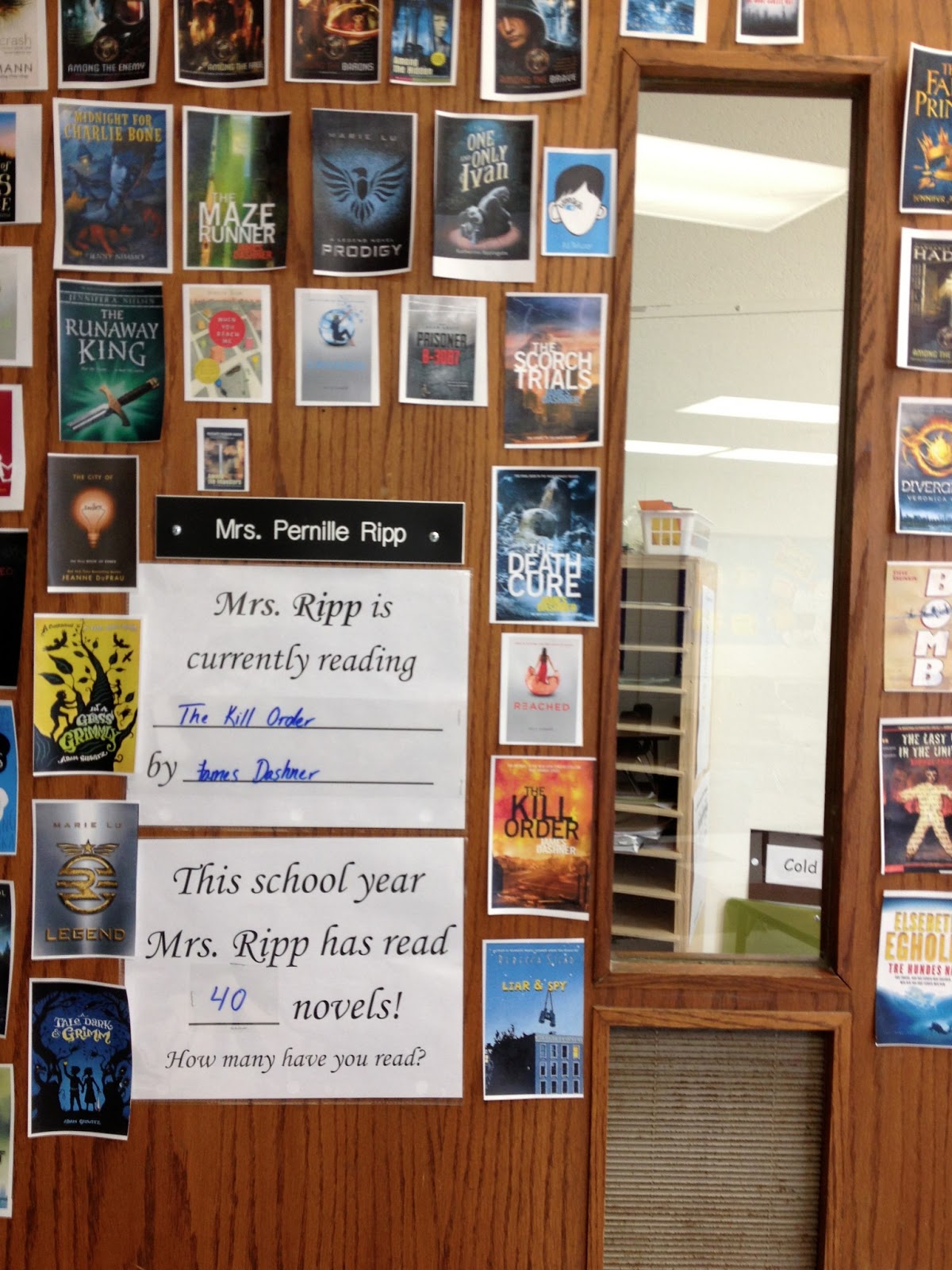 - Showcase your reading – this year through the inspiration of Jillian Heise I did a Mrs. Ripp reading display. I cannot tell you how many book discussions this sparked with not just my students, but many students who just walked by the room.