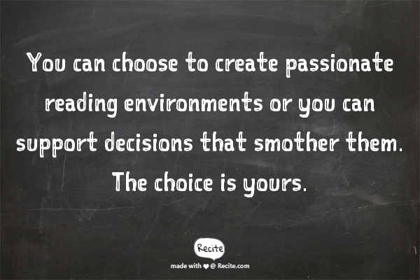There are so many things that fall within your realm, please help us teachers (like my principal Shannon Anderson does) protect the love of reading that students have and nurture it as we teach. You can choose to create passionate reading environments or you can support decisions that smother them. The choice is yours.