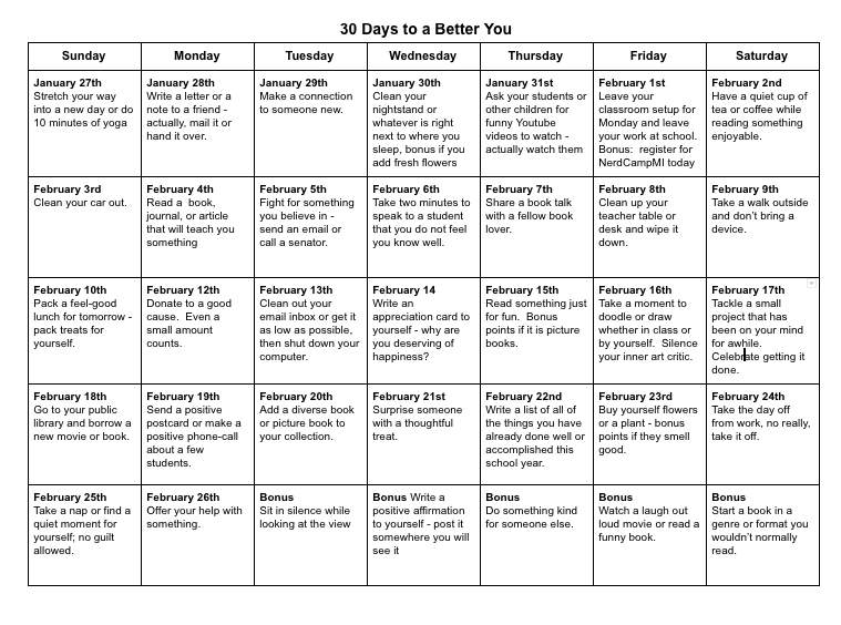 7 thoughts on “30 Day Challenge For a Happier Teacher You”