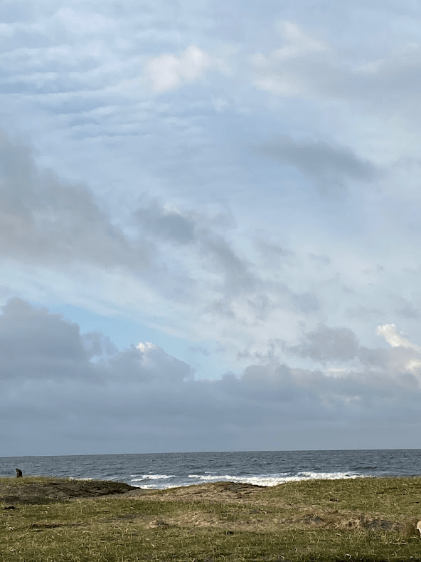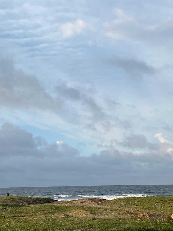 So Saturday morning we drove to the ocean and ran into it. 53-degree air temperature. It was not warm, not winter either. And we ran out and huddled in our towels and laughed. This morning we did it again.