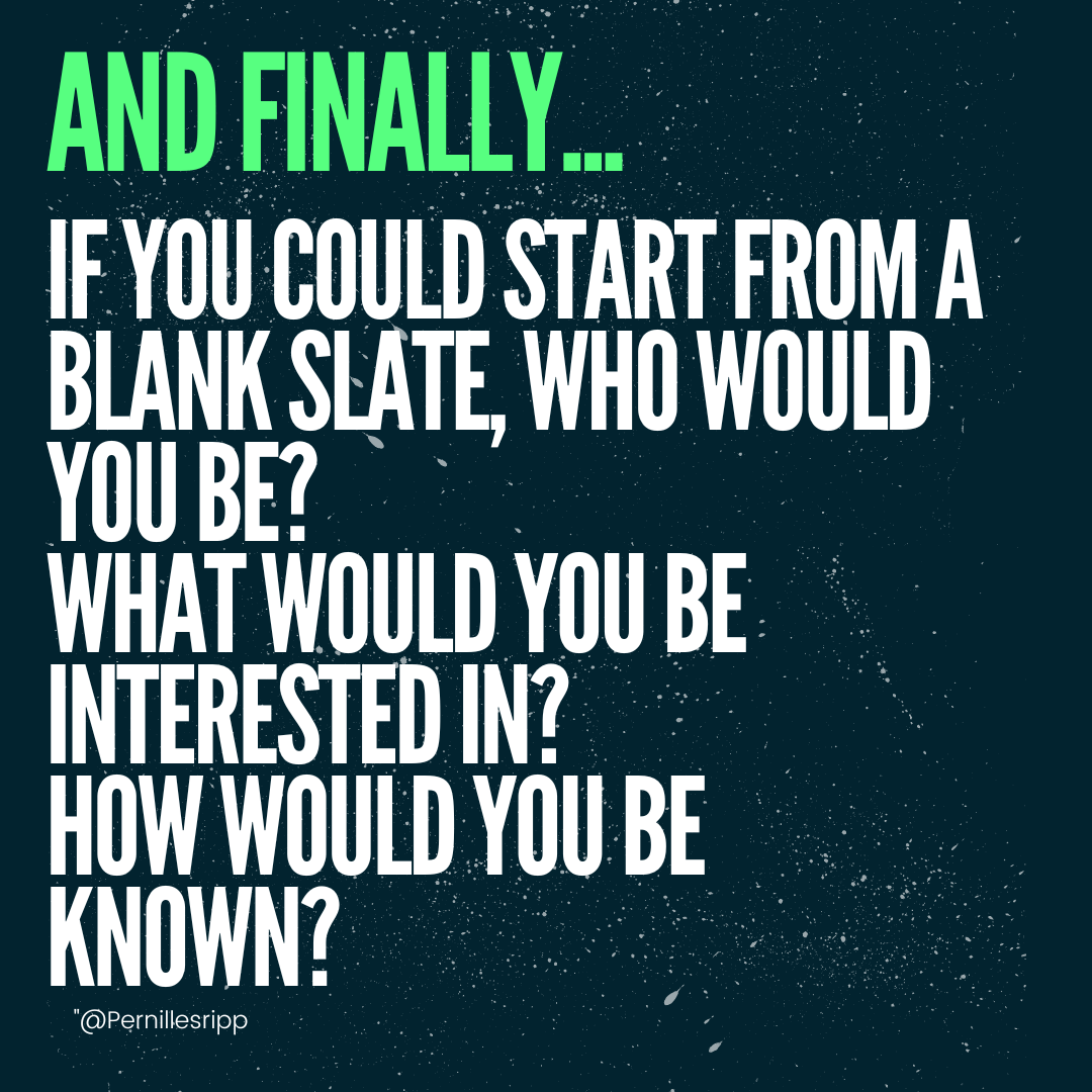 - If you could start from a blank slate, who would you be? What would you be interested in? How would you be known?